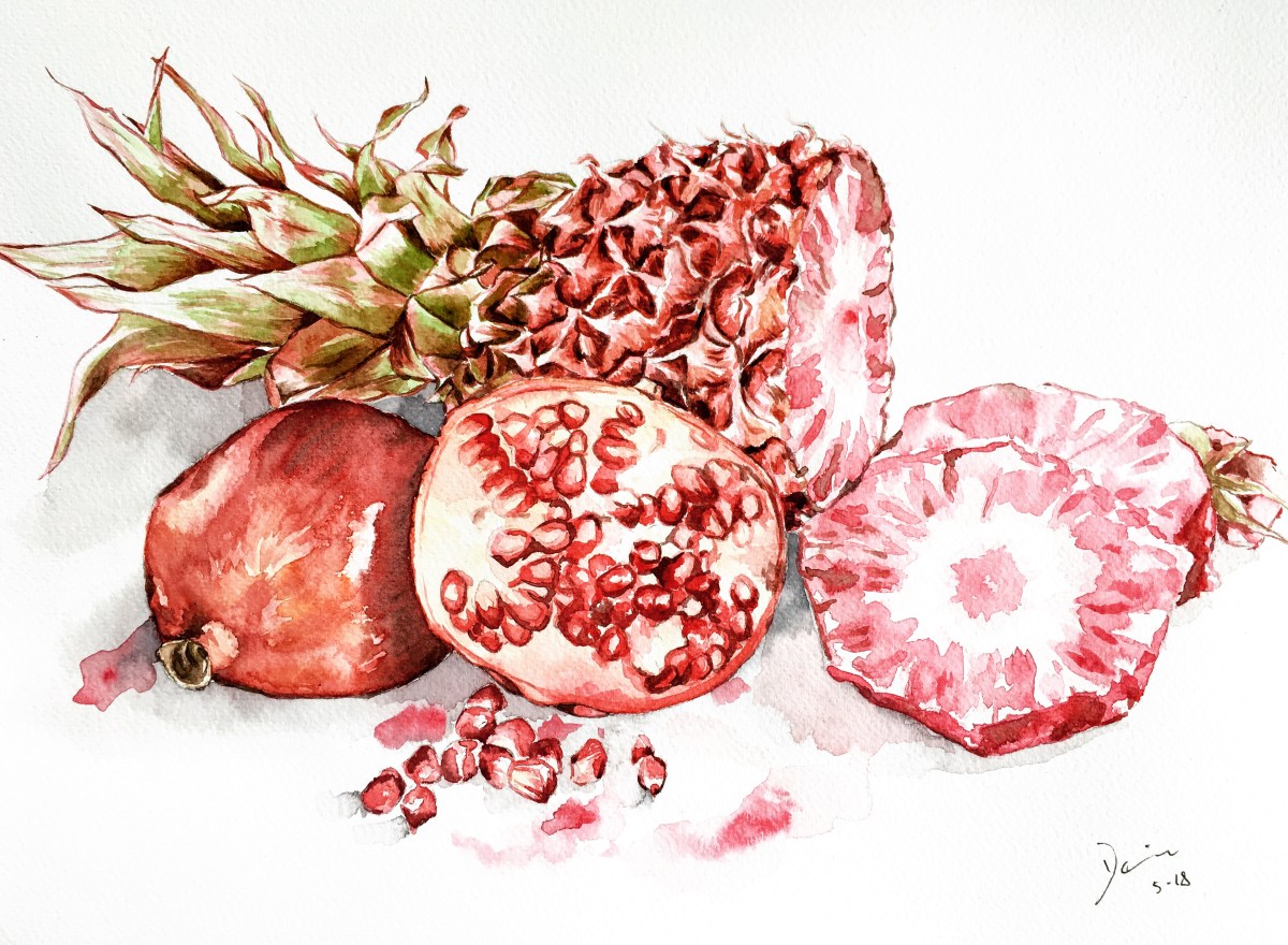 50 Shades of Pink Published June 1, 2018 at 3834 × 2814 Watercolour on paper 15”x11” Meet the rosé pineapple, the unicorn of fruit, for an eclectic Pink-a-Colada summer drink. With a hint of pomegranate juice, this guarantees to give you the perfect 50 shades of pink experience! Share this: Share on X (Opens in new window) X Share on Facebook (Opens in new window) Facebook Like Loading...