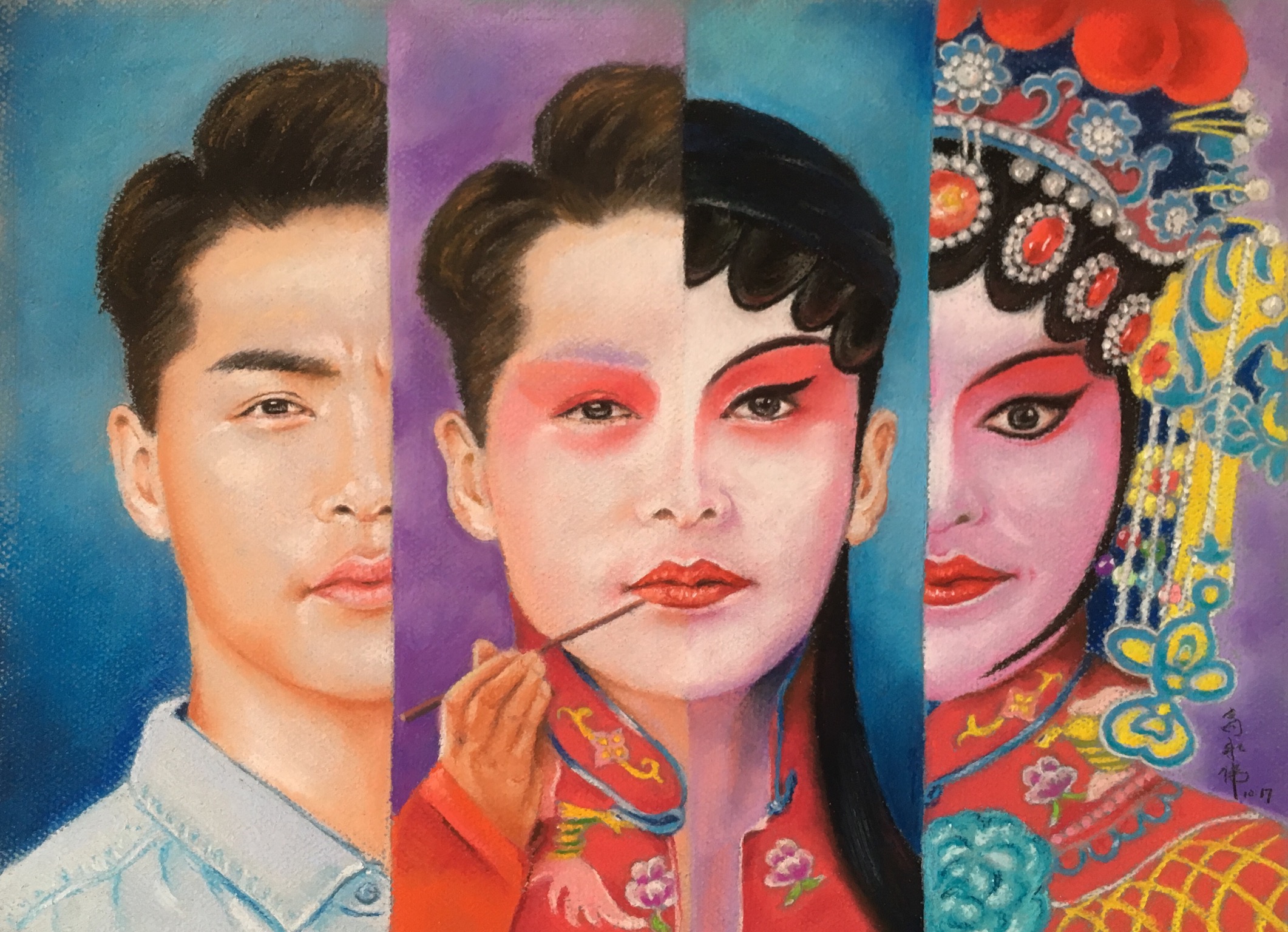 This is the second episode of my Peking Opera series. Here I want to zoom in to show the aesthetic transformation of a nandan 男旦, using soft pastel to mimic real makeup.